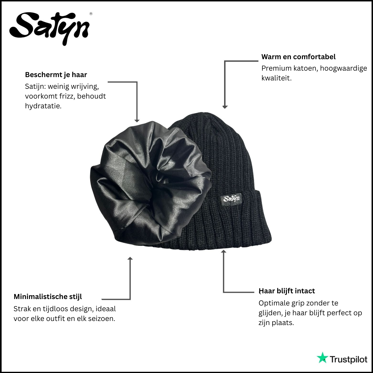 Satijn beschermt je haar, voorkomt pluizen, behoudt de hydratatie en geeft een uniek gevoel van comfort.