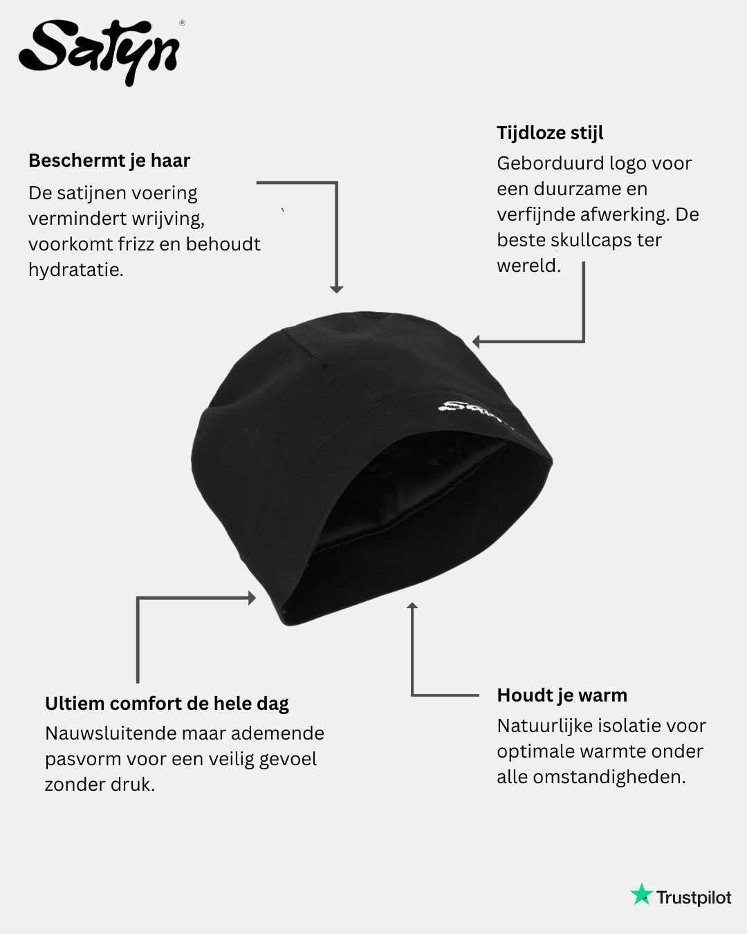 Verzorg je haar met stijl met onze Satyn-muts, het onmisbare accessoire dat moderne stijl combineert met haarverzorging! Deze muts is perfect voor streetwear-liefhebbers en voor iedereen die functionaliteit zoekt zonder concessies aan hun look. Onze muts biedt de ideale balans tussen esthetiek en comfort.